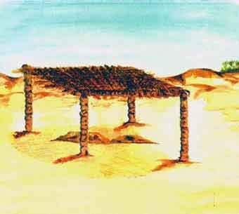 وقيل إن بني أسد حددوا له مسجداً وبنوا على قبره الشريف سقيفة ، وقيل إنهم وضعوا على القبور الرسوم ـ (ولعل الرسوم المعبر عنها بالتي لا تبلى كانت من لوائح الفخار التي عرفتها المنطقة من العهود الغابرة ، أو من الصخور الكلسية التي كانت متوافرة في تلك المنطقة ، أو من الحصاة المتناثرة في الصحراء القريبة منها ، أو لعلها كانت من جذع النخل التي لا تبلى سريعاً ) ـ التي لا تبلى ولعل المرقد كان يحمل الصورة التالية :