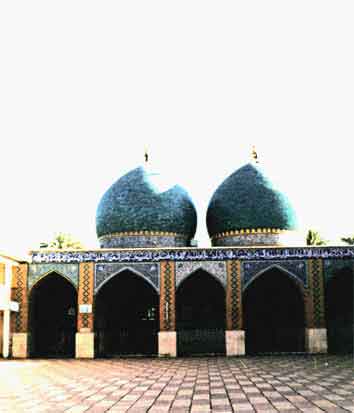 ويعلو بناء الضريحين قبتان شامختان نصف دائريتين مكسوتان بالقاشاني الأزرق الناصع وفي أسفلهما كتيبة تحتوي على آيات قرآنية محيطة بكل قبة